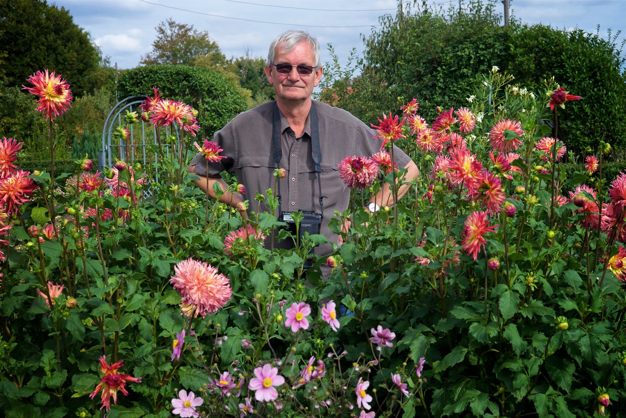 Das in Düsseldorf war ein Pressetermin, zu dem ich mal fahren durfte. Damals plante das NRW-Forum eine große Retrospektive, und verband sie mit einem Auftrag. Parr sollte in der Nähe von Düsseldorf Kleingärtner fotografieren. Daraus entstand auch ein Buch. Besonders spannend war, Parr bei der Arbeit zu beobachten, und ehrlich gesagt auch ein kleines bißchen ernüchternd. Alle Kleingärtner waren vorgewarnt, daß ein berühmter englischer Fotograf kommen sollte, der Vereinsvorsitzende hatte Freiwillige rekrutiert, um Parr herum schwirrte ein Assistententeam, das sich um die Kameras kümmerte. Als Parr die Leute arrangiert hatte, wie er sich das vorstellte, reichte ihm jemand das Arbeitsgerät, dann ging die Sache recht schnell und unzeremoniell vonstatten. Auslösen, Blitz, ein paarmal, fertig. Ich weiß nicht genau, was ich mir vorgestellt hatte. Ein nettes Buch ist es dennoch geworden. Auch mit vielen Details, die Parr am Rande noch fand, Wachstuchtischdecken, Fallobst. An so einem Tisch führte ich ein Gespräch, einer der Kleingärtner hatte Kaffee gekocht. Und ich bekam mein Parr-Porträt in den blühenden Dahlien.