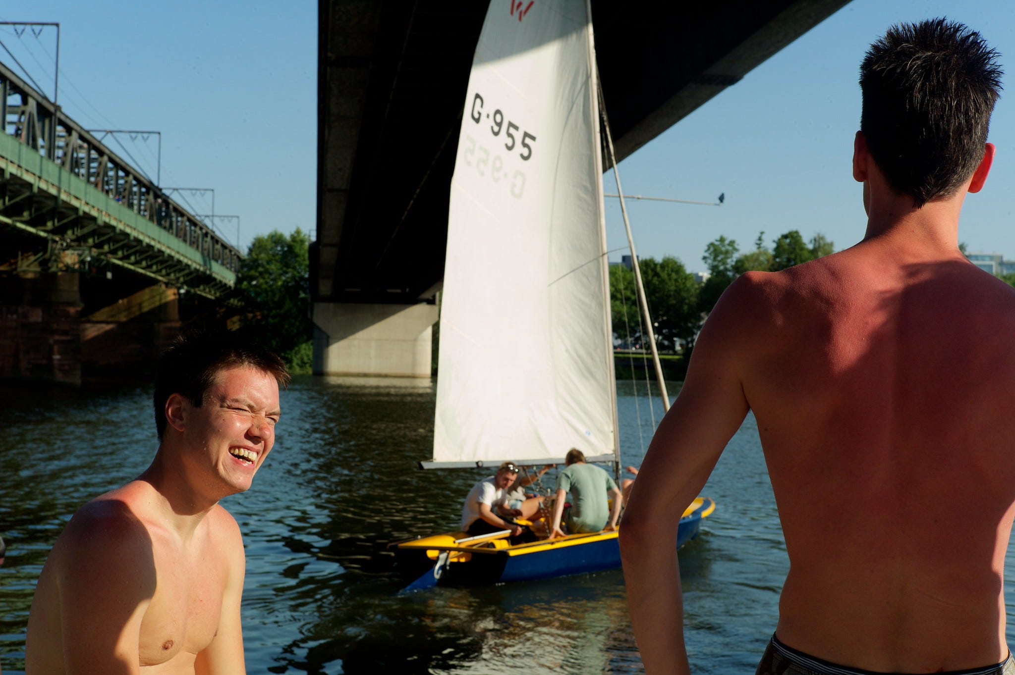 Der Orange Beach bekam recht bald einen geradezu legendären Ruf, weil es im Gegensatz zu den Bänkerschuppen und Hipsterläden so angenehm unprätentiös zuging. Egal, wer man war, wie man rumlief, und auch fast egal, wieviel Geld man hatte – Bier gabs zum Kioskpreis, dazu Wochenends eine Wurst vom Grill. Die Leute kamen zu Fuß, mit dem Rad, mit dem Kanu – oder mit der Segelyacht und legten am Ufer an.